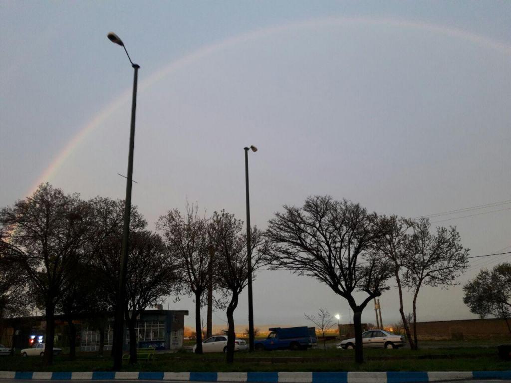 بارش نعمت الهی در بهار مردم را به وجد آورده است و عصر روز گذشته پس از بارش باران تشکیل رنگین کمانی زیبا این شادی را دو چندان کرد و تصاویر بسیاری از گوشه نقاط شهر از این رنگین کمان برای ما ارسال شد.
