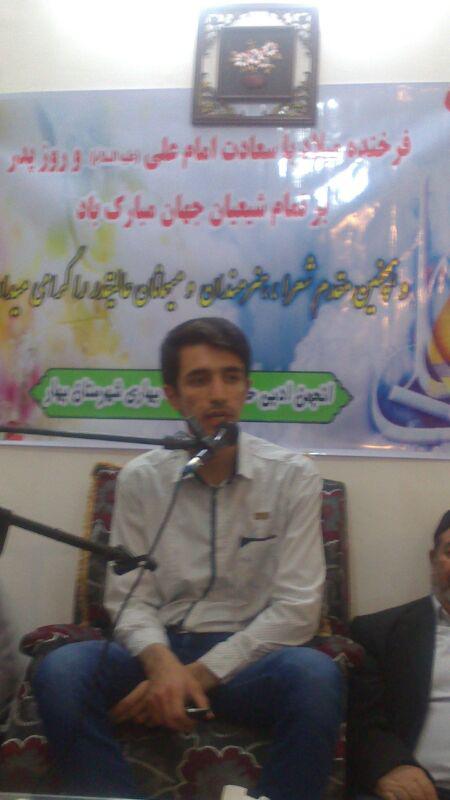 به گزارش بهارانه،به مناسبت میلاد با سعادت حضرت امیرالمومنین (ع) شب شعری در منزل یکی از شعرای خوش ذوق بهاری برگزار شد که در آن شعرایی از استان زنجان ، شهر لالجین و صالح آباد حضور داشتند.