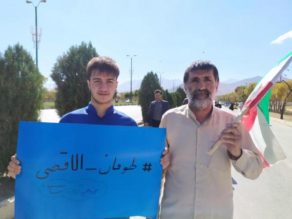 تجمع مردم بهار در اعتراض به جنایت جنگی رژیم اشغالگر قدس بر علیه مردم غزه در محل حوزه علمیه آیت الله بهاری