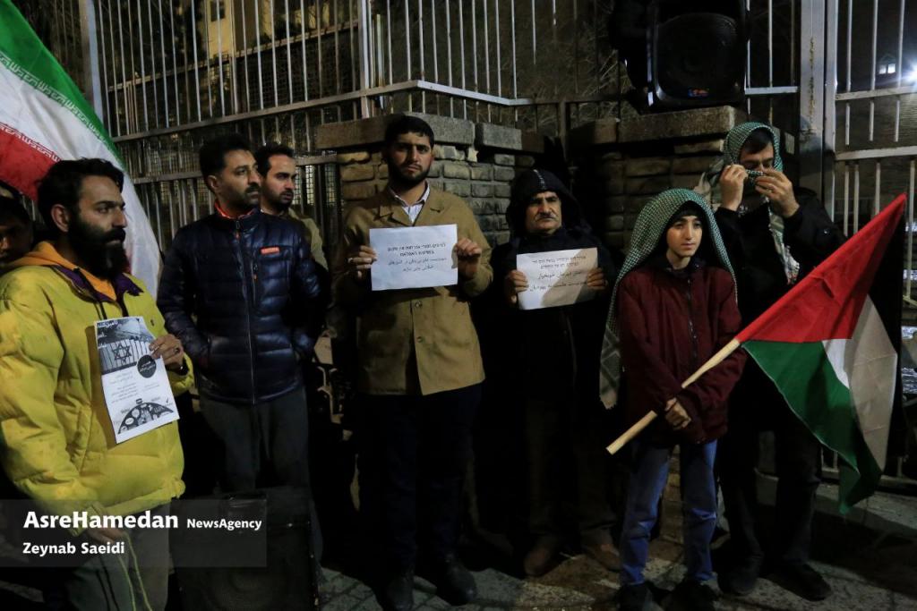 به گزارش بهارانه؛ جمعی از مردم همدان، شامگاه یکشنبه ( ۵ فروردین ۱۴۰۳) در محکومیت جنایات رژیم صهیونیستی و حمایت از مردم مظلوم غزه مقابل مقبره استرومردخای تجمع کردند.جنگ رژیم صهیونیستی علیه غزه روز ۱۷۰ خود را در حالی سپری می کند که جنایات اشغالگران در رفح، خان یونس و دیرالبلح ادامه دارد.