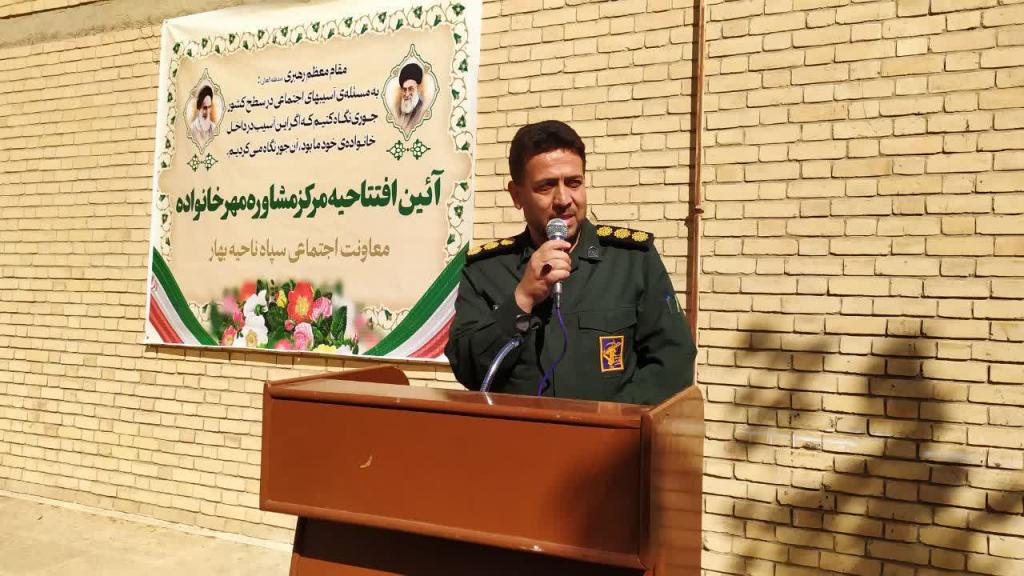 سرهنگ جعفر حسام طاهر، فرمانده سپاه ناحیه بهار، در آیین افتتاح مرکز مشاوره خانواده "مهر" که با حضور جمعی از مسئولان محلی برگزار شد، اظهار داشت: این مرکز با حمایت معاونت اجتماعی سپاه و با هزینهای بالغ بر ۲۵۰ میلیون تومان برای تجهیز، راهاندازی شده است.